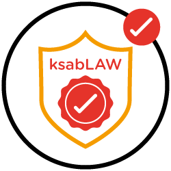 Logo with the word 'ksabLAW' in light blue and dark purple text.